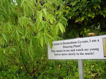 跳舞草學(xué)名為“Desmodium Gyrans”。這種植物最奇異的特點(diǎn)就是葉片會(huì)隨溫度變化或音樂伴奏而上下舞動(dòng),因此得名“跳舞草”。當(dāng)跳舞草受到陽光直射時(shí)或是處于較溫暖的環(huán)境下,它們就會(huì)快速地舞動(dòng)自己的葉子。當(dāng)音樂響起時(shí),跳舞草也會(huì)做出一些反應(yīng)。在跳舞草每一片葉子的根部,都有一個(gè)相當(dāng)于鉸鏈裝置的結(jié)構(gòu),葉子可以圍繞它沿著橢圓形路徑旋轉(zhuǎn)。